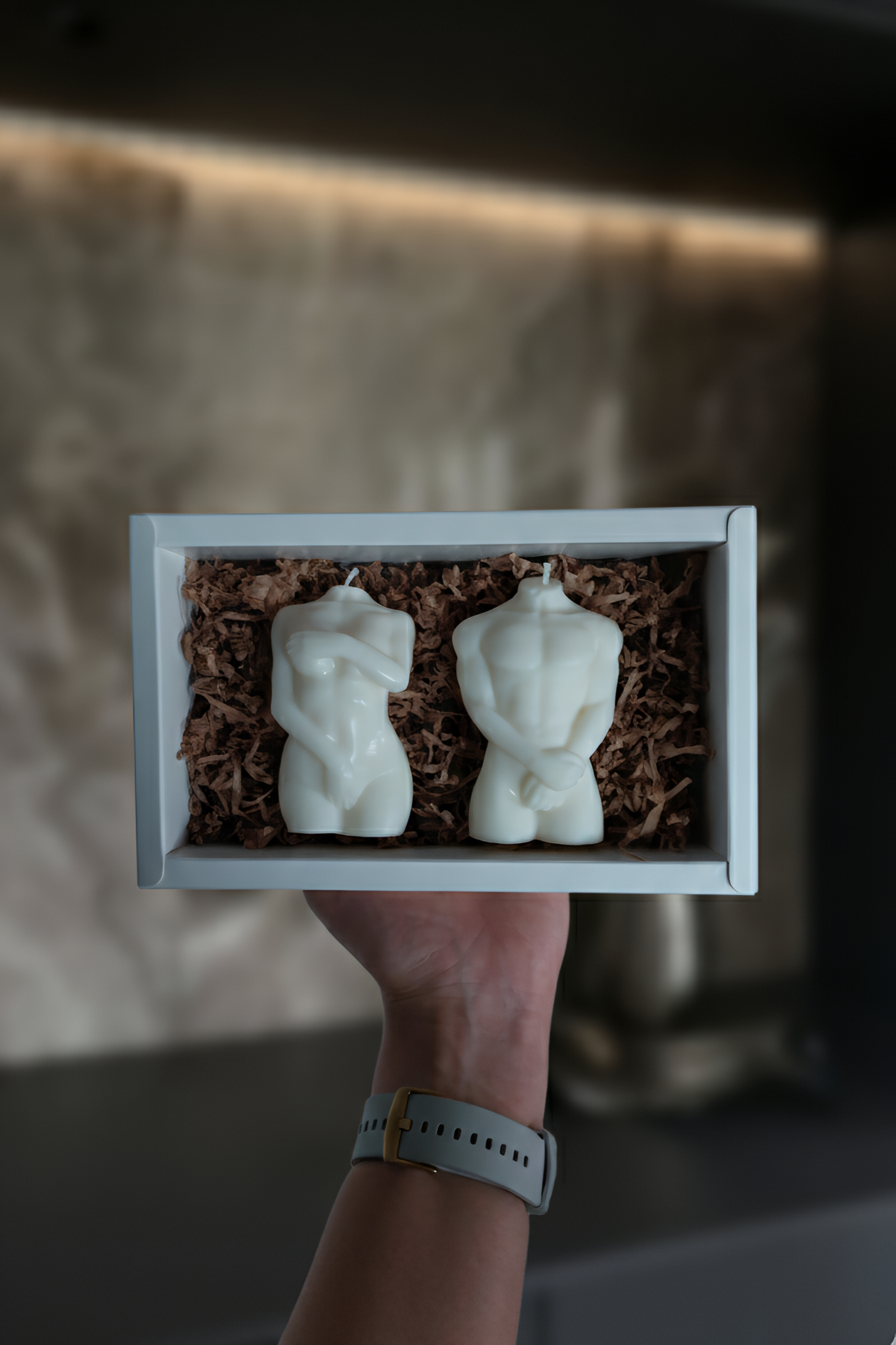 Atraskite estetiką ir harmoniją su mūsų išskirtiniu rankų darbo žvakių rinkiniu. Tai duetas, simbolizuojantis bendrystę, artumą ir žmogaus kūno grožį. Šis rinkinys – tai ne tik šviesos šaltinis, bet ir stilingas interjero akcentas, suteikiantis namams rafinuotumo ir jaukumo.