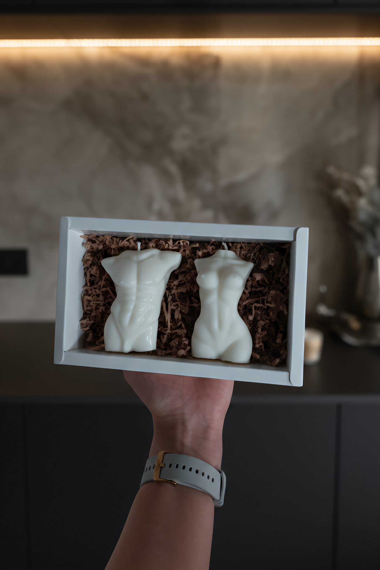 Šis rinkinys – tai duetas, kuriame susitinka jėga ir elegancija. Išskirtinio dizaino moters ir vyro siluetai pasižymi išraiškingomis linijomis ir preciziškomis detalėmis, paverčiančiomis žvakes moderniomis skulptūromis jūsų namams.