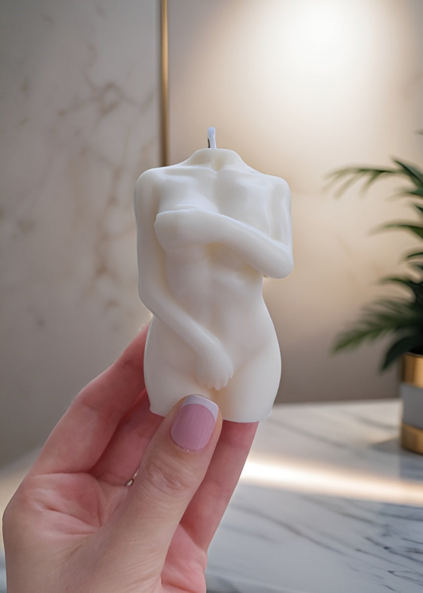 Rankų darbo žvakė, kuri pagaminta iš natūralaus sojų vaško su medivilnine dagtimi.