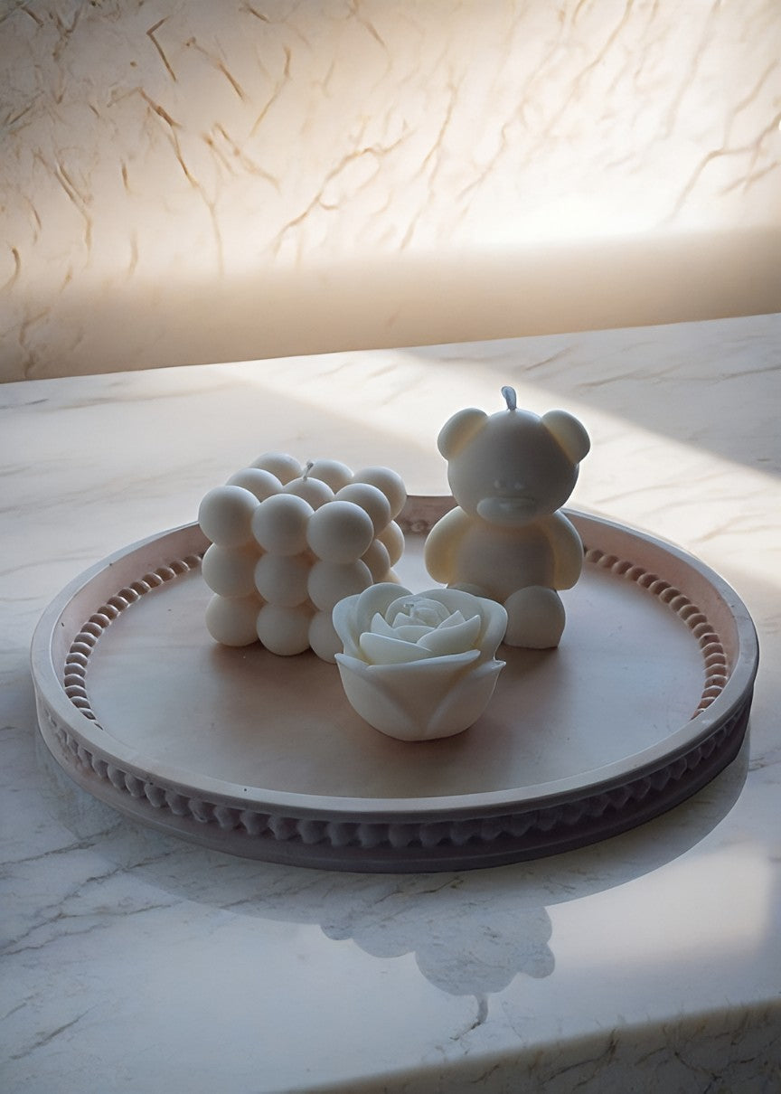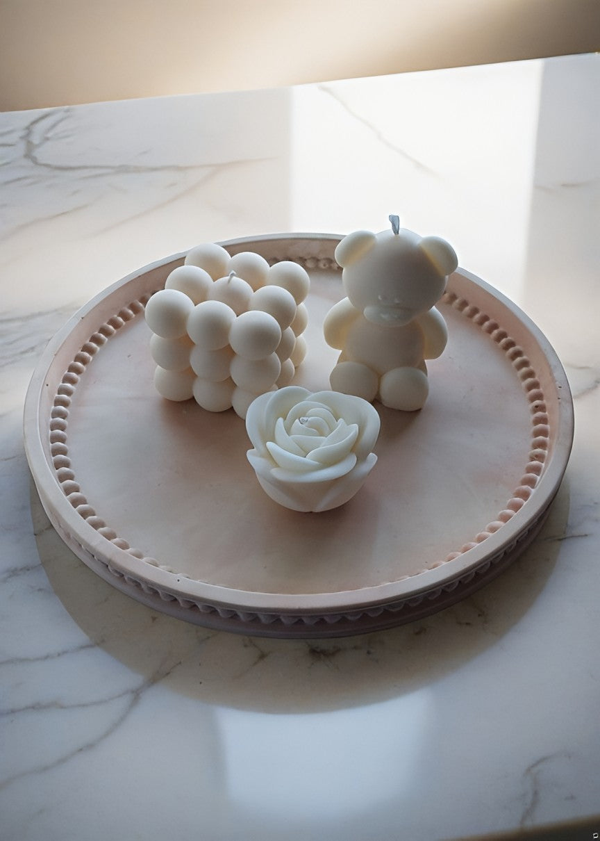 Visos žvakės ir padėkliukai yra rankų darbo, todėl galutinė produkto išvaizda (spalva, forma ir kt.) gali šiek tiek skirtis nuo pateikiamų nuotraukų.
