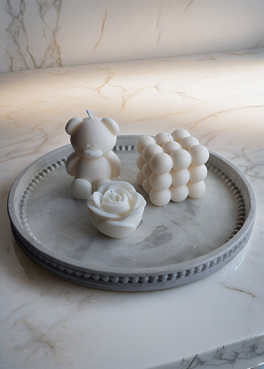 Rankų darbo padėkliukas iš gipso, pavirčius lakuotas, todėl nebijo vandens.