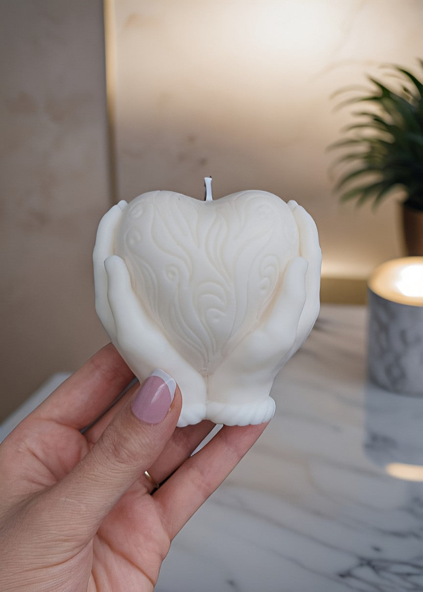 Rankų darbo žvakė, kuri pagaminta iš natūralaus sojų vaško su medivilnine dagtimi.