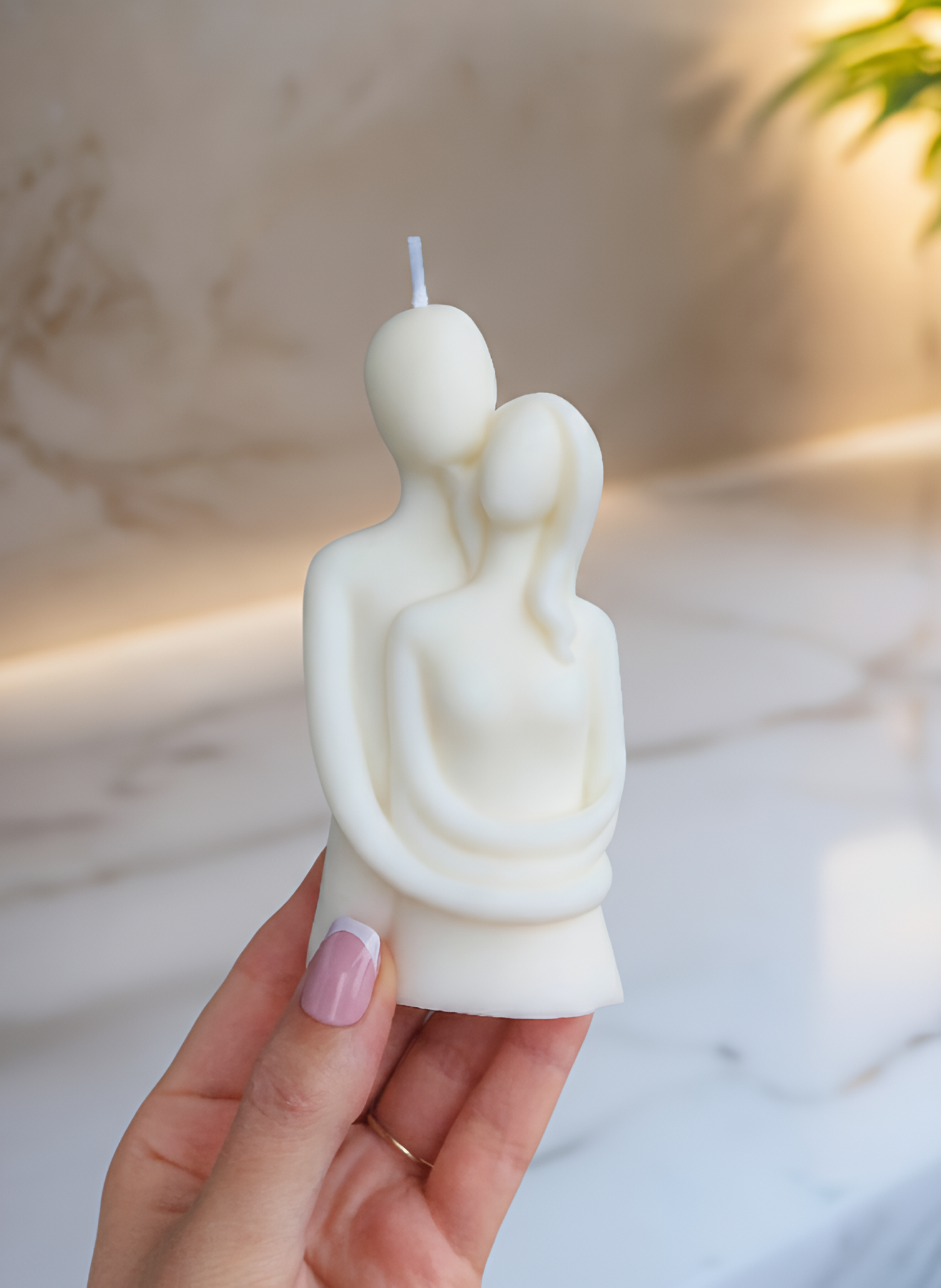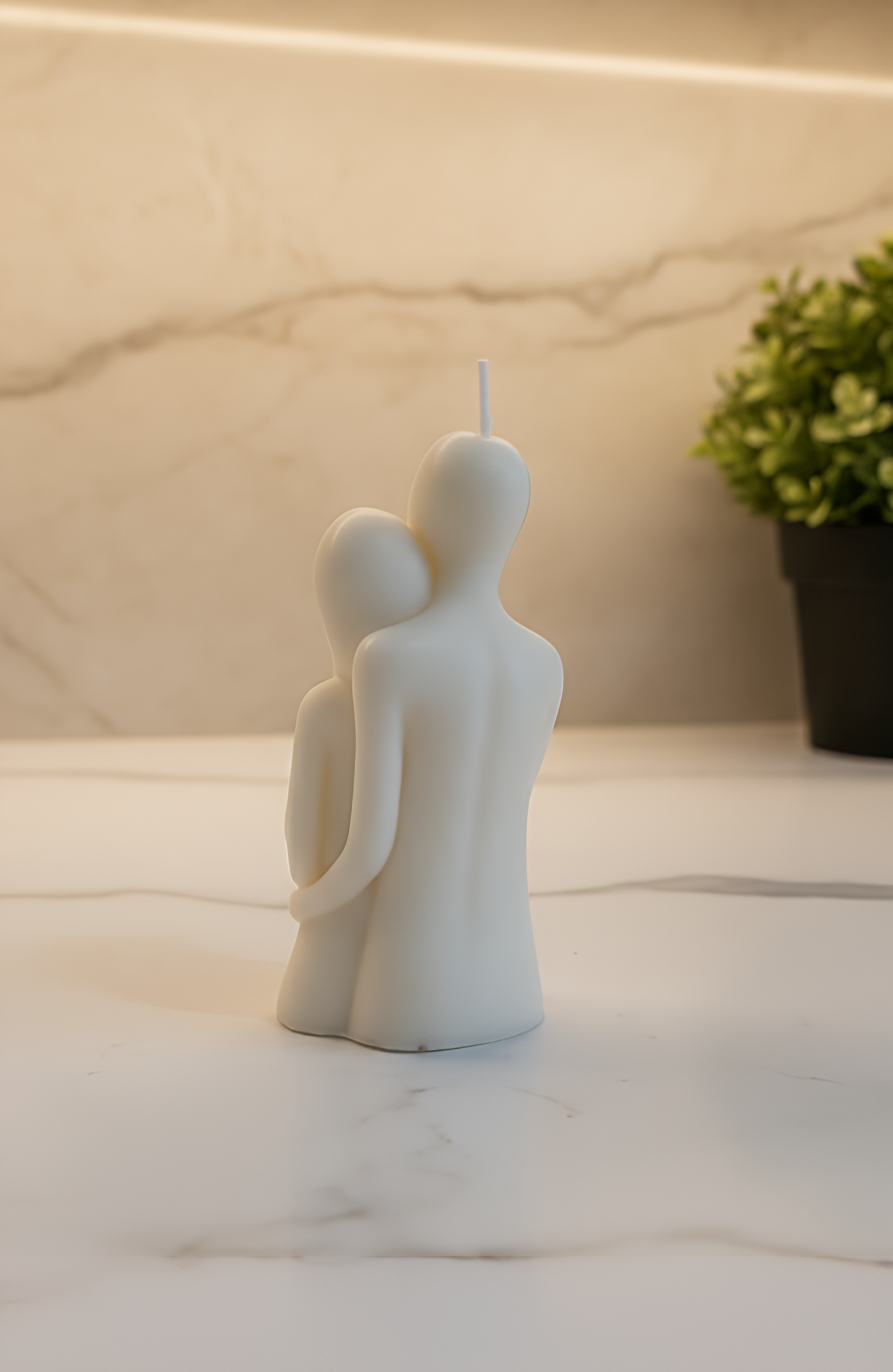 Pajuskite tikrąją namų šilumą su viena jautriausių mūsų kolekcijos detalių. Rankų darbo žvakė, vaizduojanti švelnų vyro ir moters apsikabinimą, yra daugiau nei interjero elementas – tai tyli istorija apie ryšį, saugumą ir buvimą kartu.